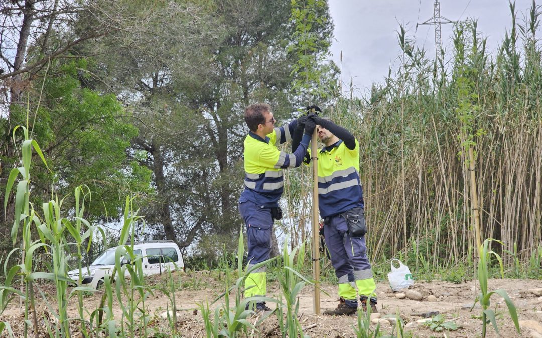 🔹 Control del rebrot de canya (Arundo donax): una espècie exòtica invasora que competeix amb la vegetació de ribera autòctona. Un cop tret el rizoma, encara s’han de fer actuacions periòdiques de desbroç per tal de reduir-ne la seva.