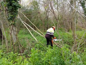 Des del Centre Especial de Treball de l’Associació Aurora s’estan realitzant els treballs del projecte de millora i consolidació del bosc de ribera del tram mig i baix del riu Glorieta.